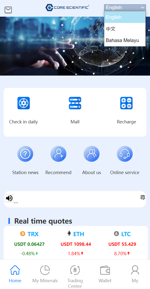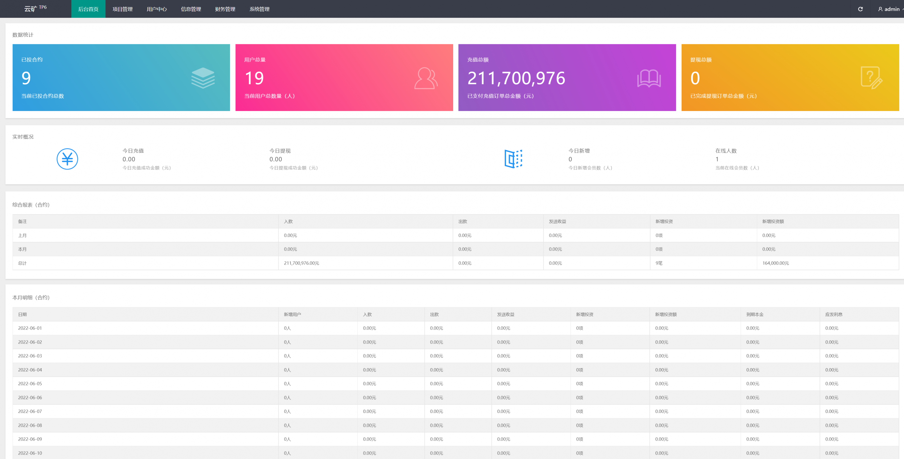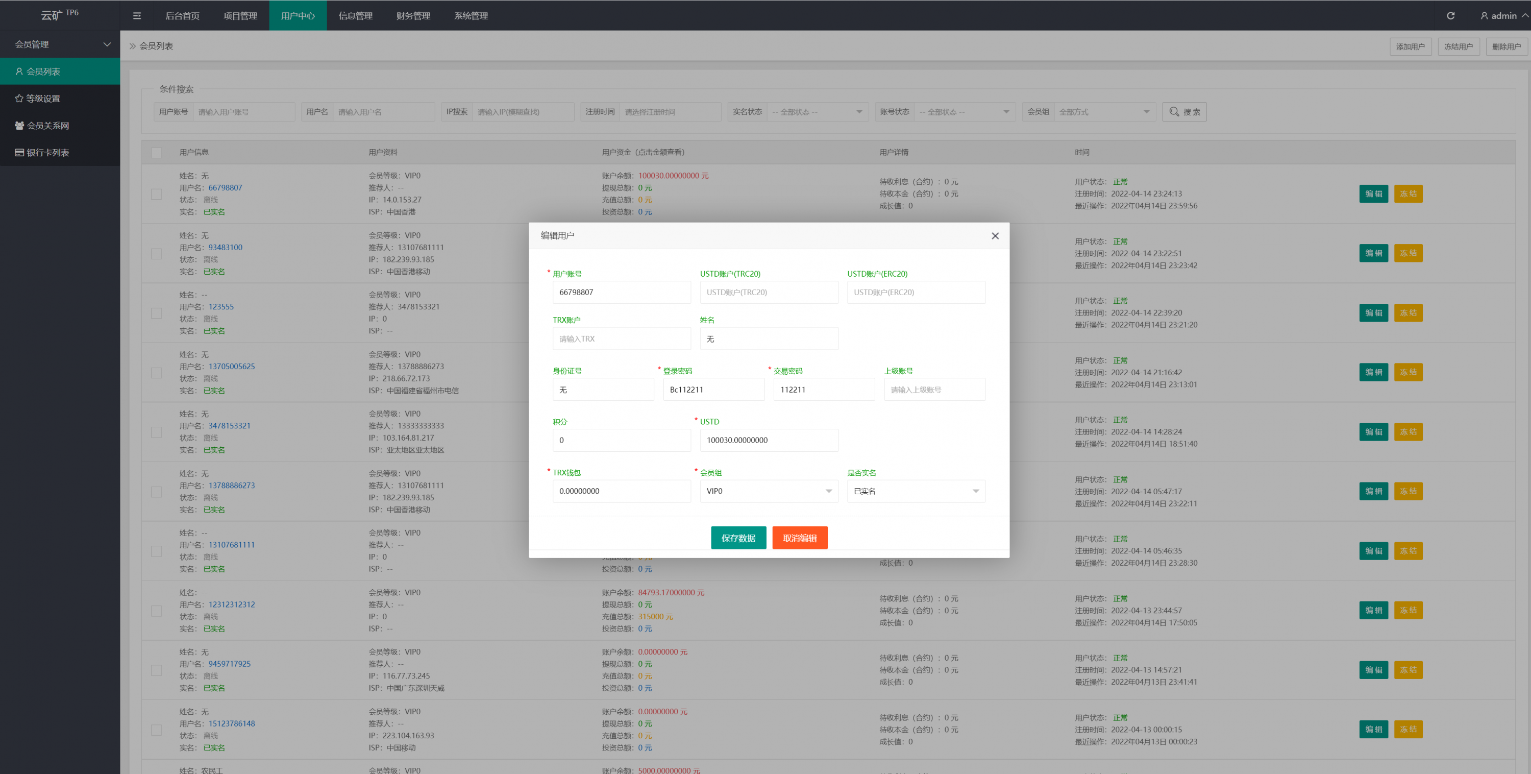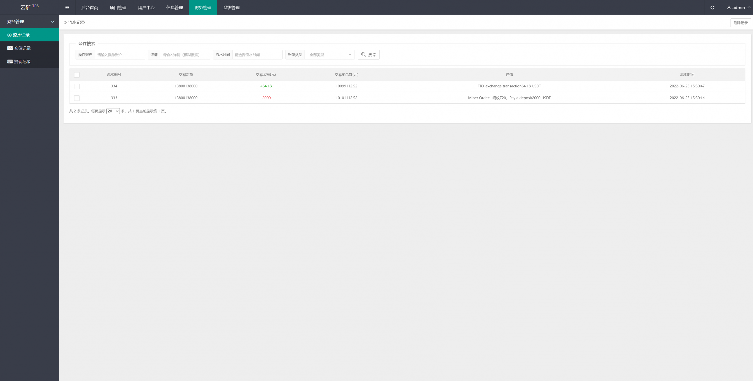 admin 微盘理财 综合系统 二开版TRX矿机系统/TRX投资系统/算力合约矿机/区块链云矿机系统 二开版TRX矿机系统/TRX投资系统/算力合约矿机/区块链云矿机系统 此套是在原版上的usdt二开的TRX玩法,前端为三种语言 充币依然使用usdt充值,使用usdt购买矿机获取TRX收益 TRX收益支持在系统自带的交易中心出售,也可以申请提币