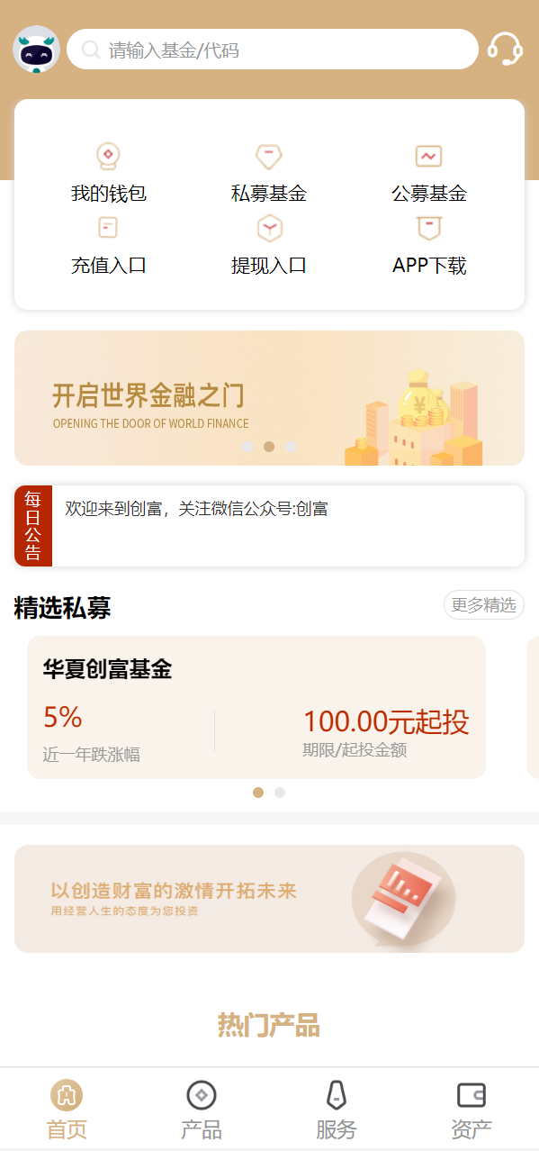 admin 微盘理财 综合系统 uniapp版股票基金财投资系统/投资理财基金 uniapp版股票基金财投资系统/投资理财基金 前端是uniapp,后台为thinkphp 1,实名认证解锁 2,公墓基金 私募基金 3,采取阿里云几千数据接口 4,添加自选功能 5,风险测评 6,开通基金账户 7,增加余额宝功能 8,增加团队分销