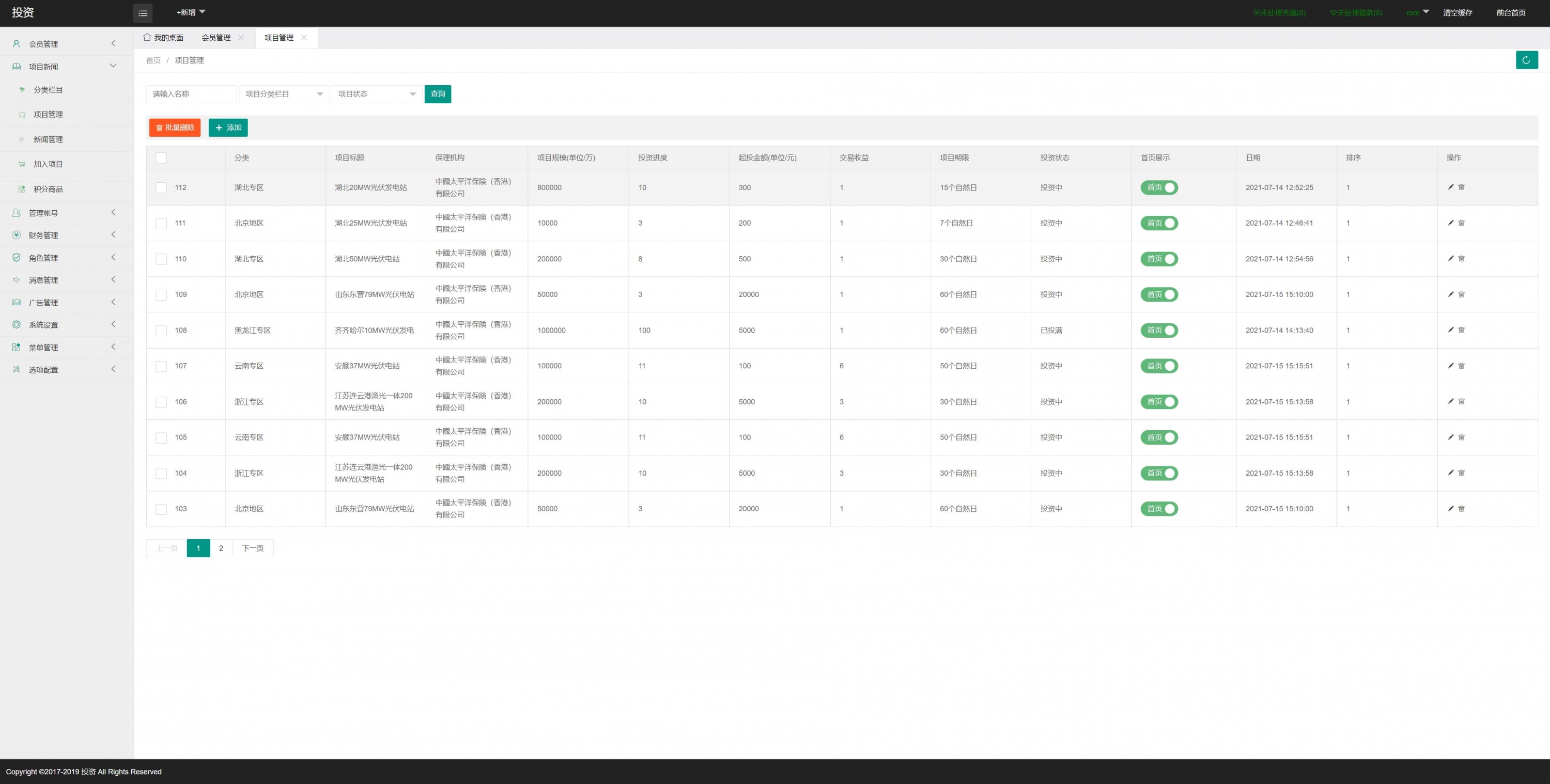 admin 微盘理财 综合系统 UI光伏电站投资系统/项目投资理财/投资返利/在线客服 新UI光伏电站投资系统/项目投资理财/投资返利/在线客服 1,增加客服合并一体 2,增加积分商城 3,后台可以自己发布产品 4,每天返利,到期还本 5,增加实名认证 需加语言 二开等 联系客服