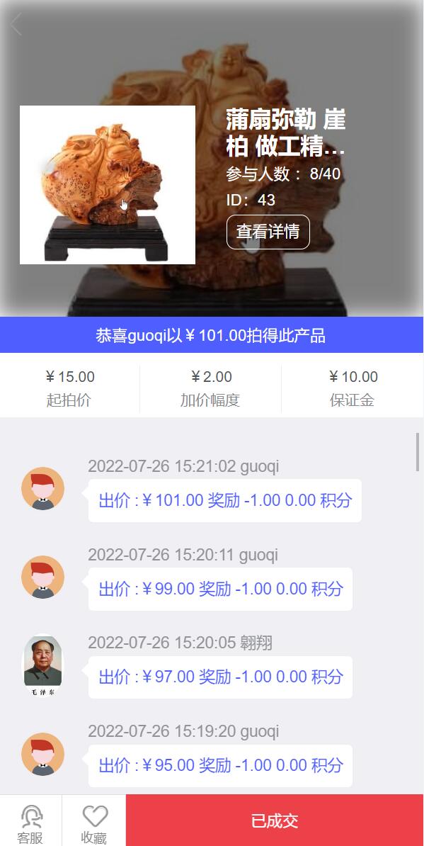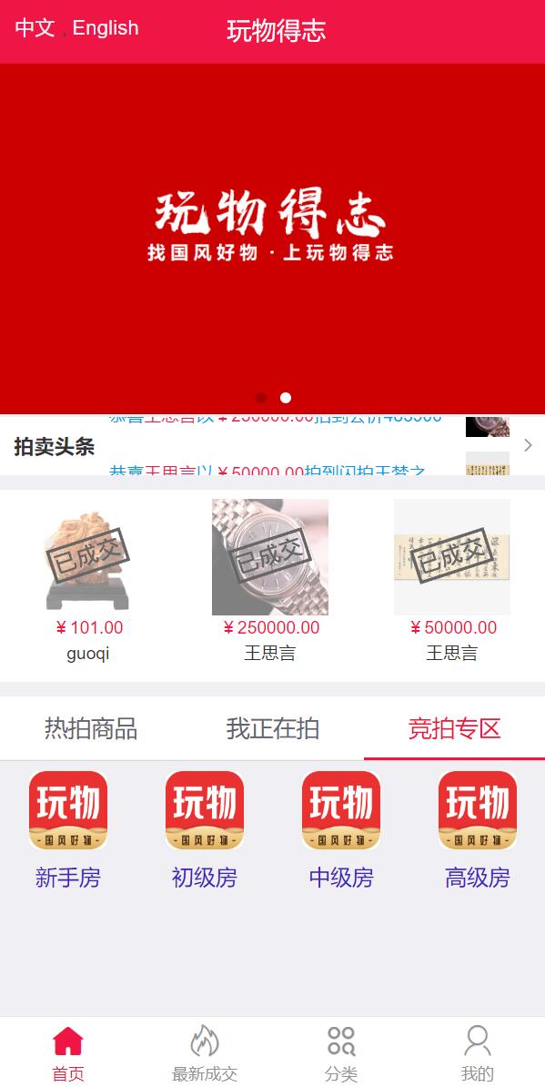 admin 商城刷单 综合系统 双语言版竞拍系统/竞拍转拍/竞拍商城/商场寄售系统 双语言版竞拍系统/竞拍转拍/竞拍商城/商场寄售系统 一款比较经典的拍卖系统前端支持中文、英文随意切换 竞拍支持添加机器人参与竞拍 源码附带营销工具支持添加任务奖励、新人礼包、充值返利等功能