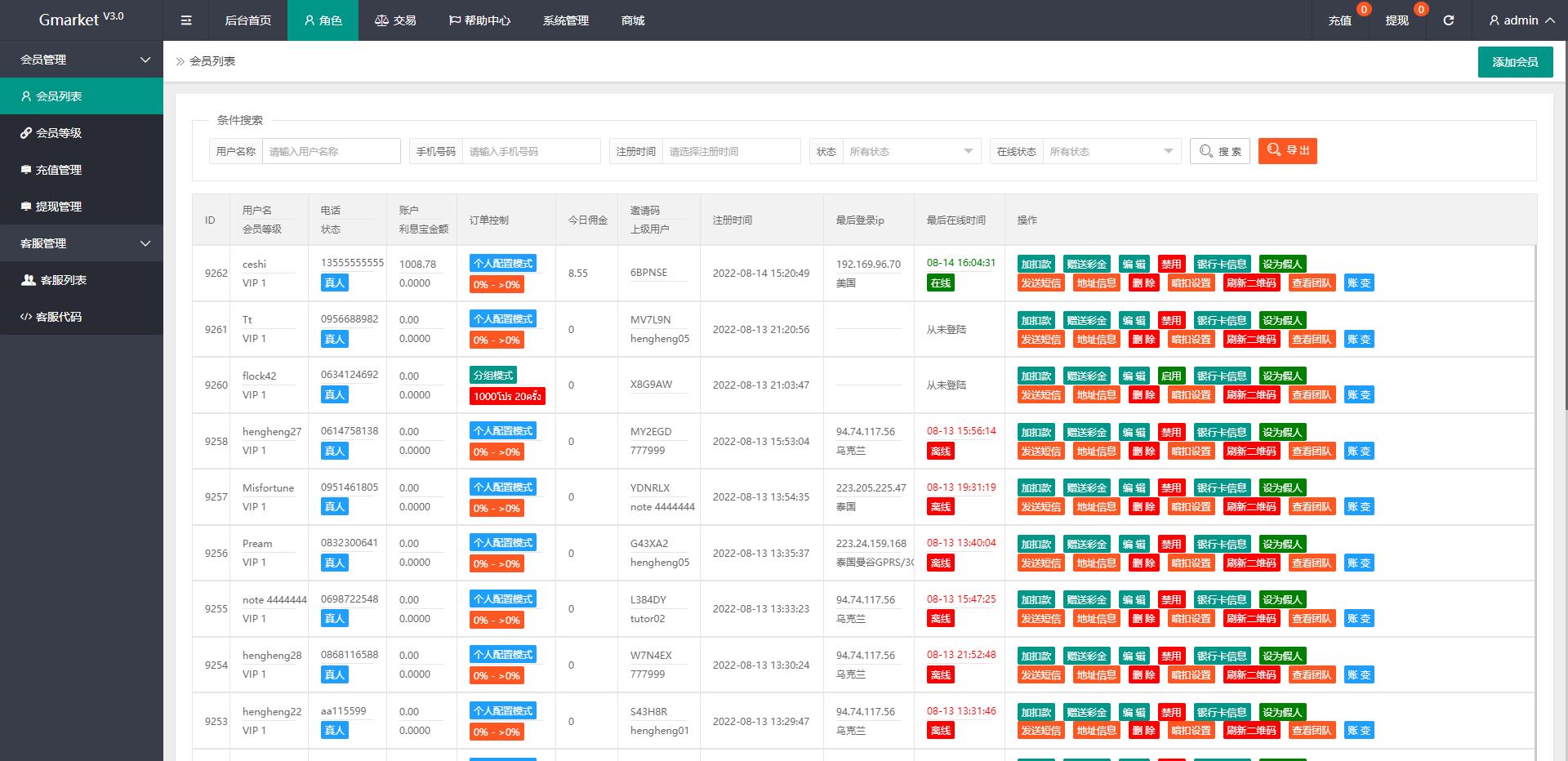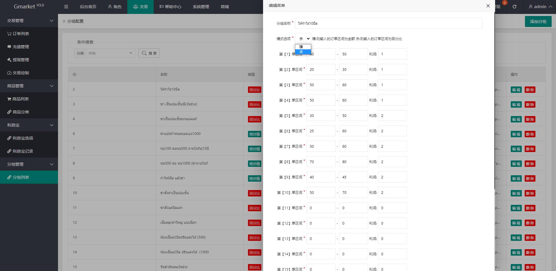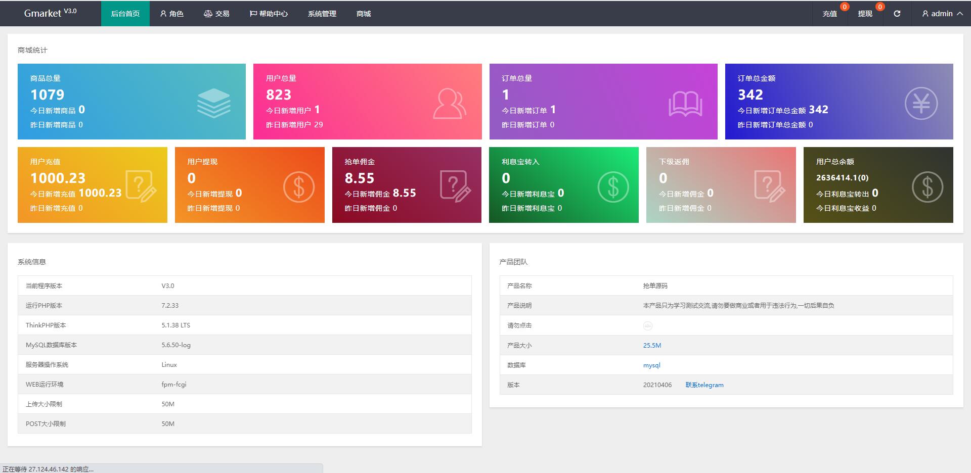 admin 商城刷单 微盘理财 综合系统 全新多语言四套UI海外抢单刷单系统/订单自动匹配系统/分组杀/连单控 全新多语言四套UI海外抢单刷单系统/订单自动匹配系统/分组杀/连单控 此套系统可以说是抢单的天花板了,该有的功能应有尽有 前端9种语言后台任意设置开关,前端四套UI后台任意切换 功能支持分组、百分比、固定值、连单设置、充值彩金等众多功能