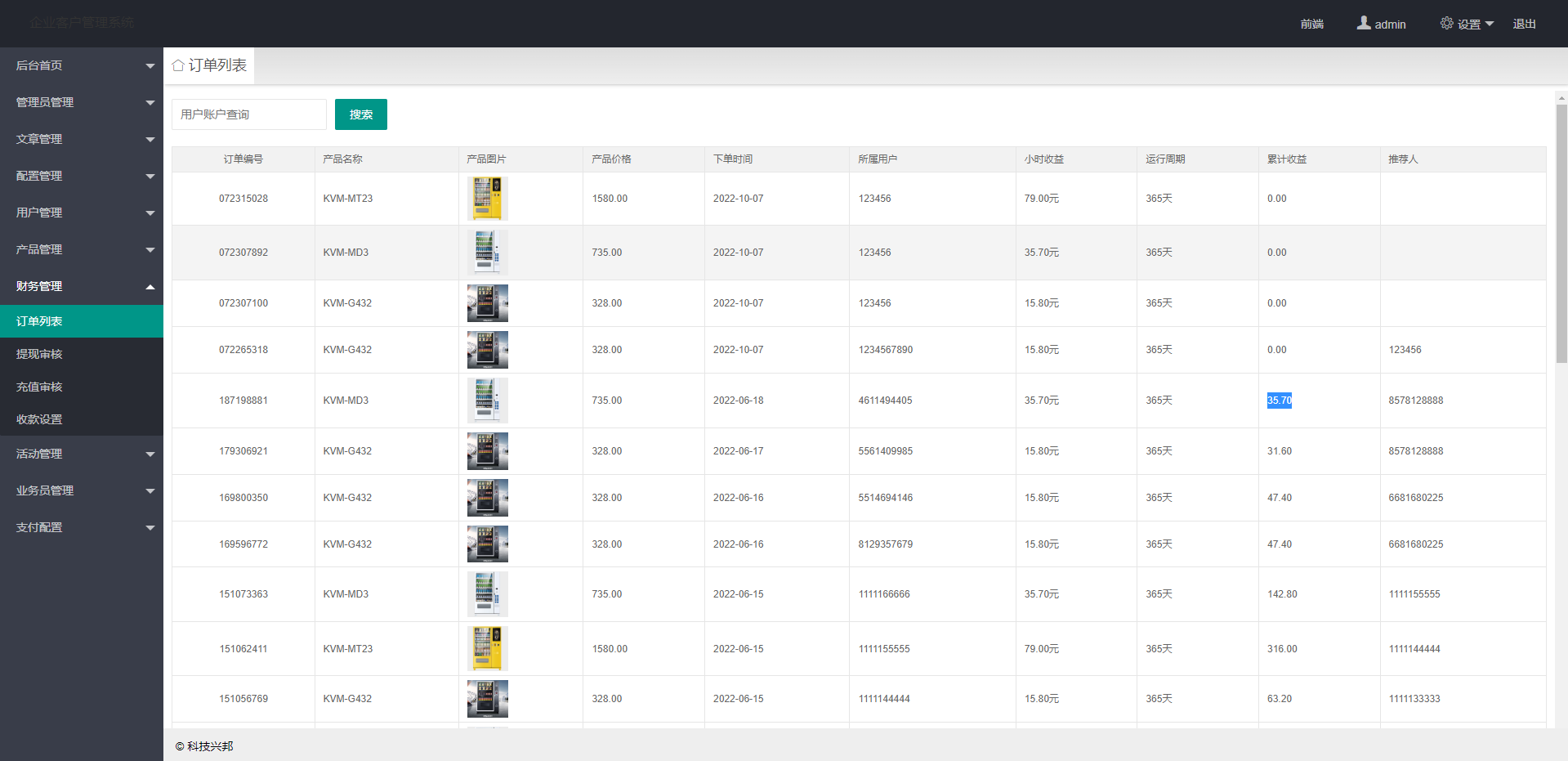 admin 微盘理财 综合系统 海外版理财分红系统/共享投资/充值赠送/注册红包/三级代理 一款不一样得海外投资,前端是双语言,但是系统里带的是多个语言包,没有翻译完整 系统功能基本符合运营需求,三级代理、充值活动、收益活动等功能 支付对接第三方,需要自己更改
