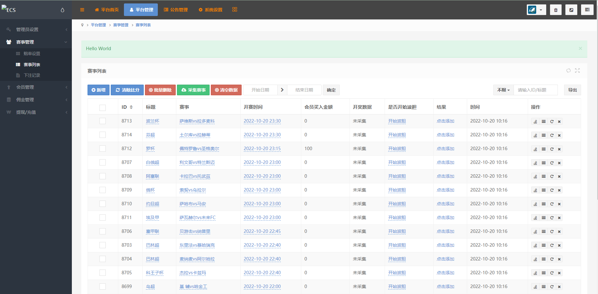 赛事采集接口正常,目前是俩个采集接口正常