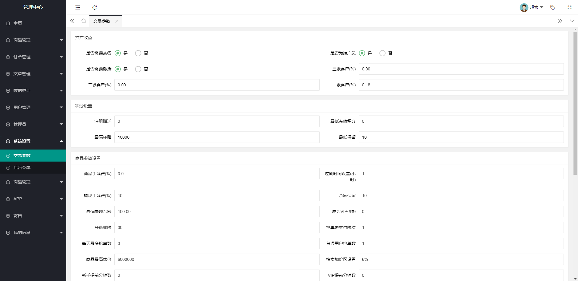 admin 商城刷单 综合系统 前端uinapp竞拍系统/转拍闪拍系统/挂售转卖竞拍商城系统 玩法简介 ①、后台可添加商品进行挂单 ②、后台设置场次以及场次开始时间 ③、用户抢单 ④、抢单以后可选择提货或者转售 ⑤、玩家寄售需按照后台设置百分比进行加价 ⑥、玩家寄售需支付手续费(余额支付、支付宝APP支付、支付宝H5支付、微信APP支付) ⑦、玩家提货可获得商品相应价值积分,可在积分商城党换商品