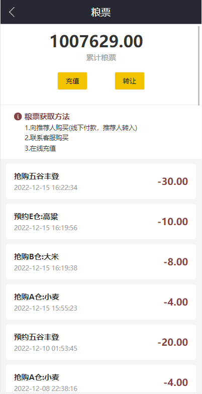 团队推广收益可以兑换粮票,粮食