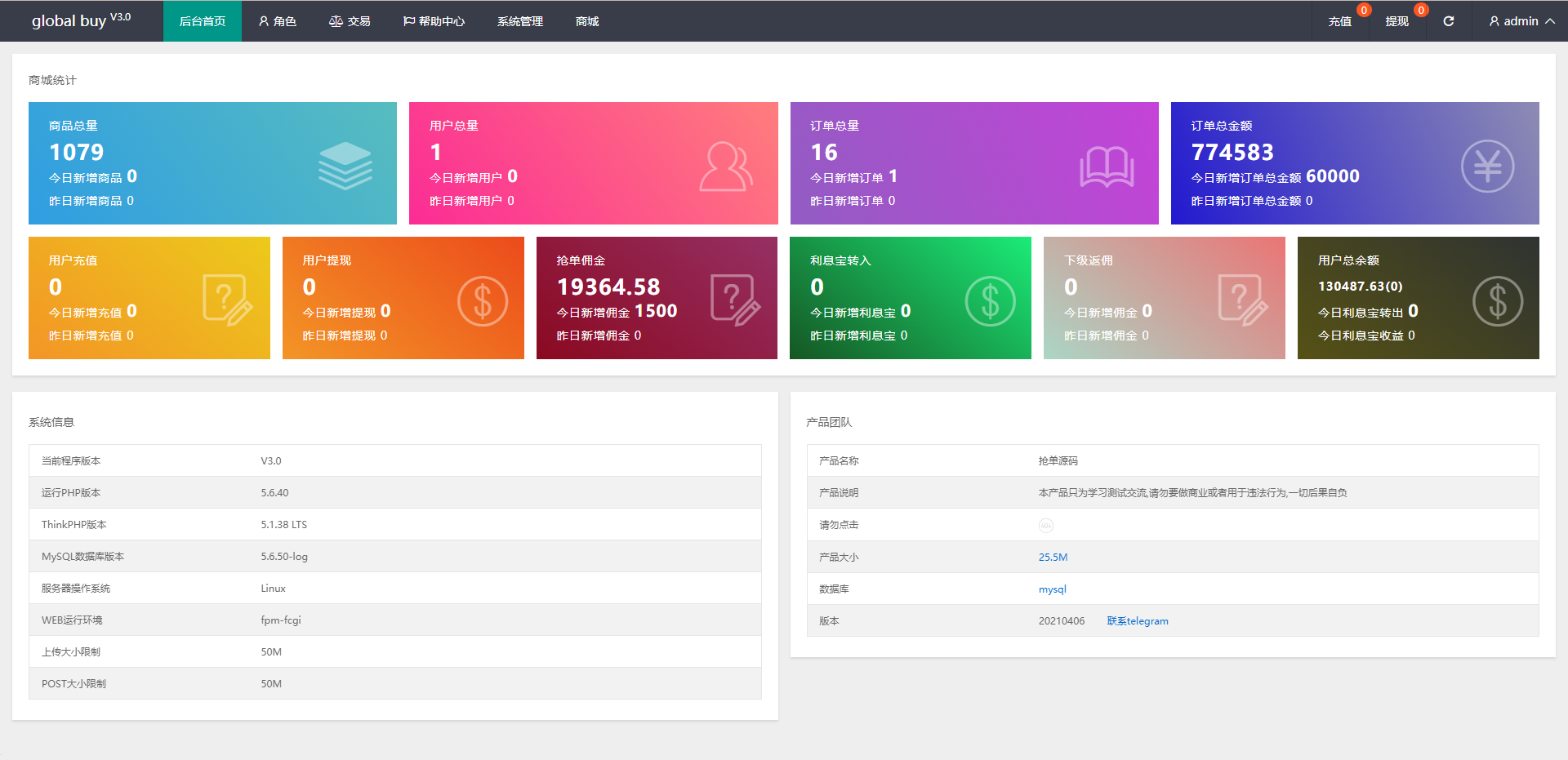 admin 商城刷单 九套UI可切换海外抢单刷单系统/订单自动匹配系统/分组杀/连单控 更新5套ui 为紫色 粉色 青色,其他的为红色,蓝色,黄色,黑色,绿色,橙色, 前端9种语言后台任意设置开关,前端九套UI后台任意切换 功能支持分组、百分比、固定值、连单设置、充值彩金等众多功能 支持定制其它UI