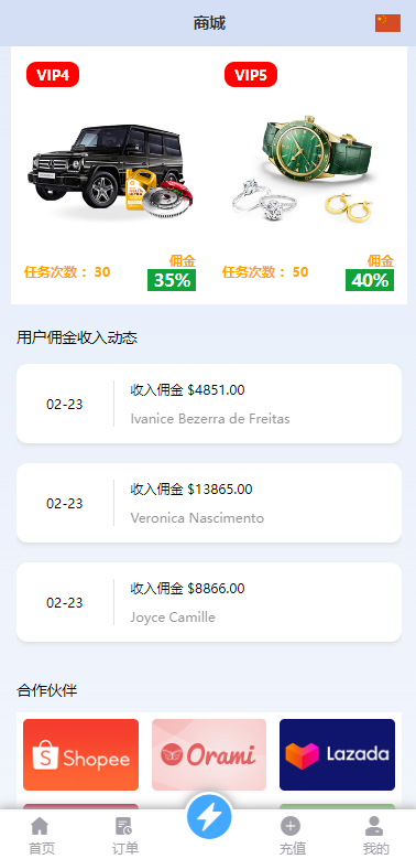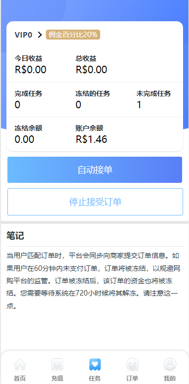 admin 商城刷单 双UI多语言海外抢单刷单系统/分组派单/订单自动匹配系统 前端双套UI支持后台切换,多语言支持切换设置默认语言 系统功能支持: 待结算:订单提交了不会马上结算,可以修改这个待结算,如果输入0那么订单提交了马上结算, 超时时间:订单匹配到在这个时间内没有提交会被冻结,冻结了没办法提交,只有后台手动解封 会员有分组时就按照分组里的规则派单,没有分组时按照会员等级匹配