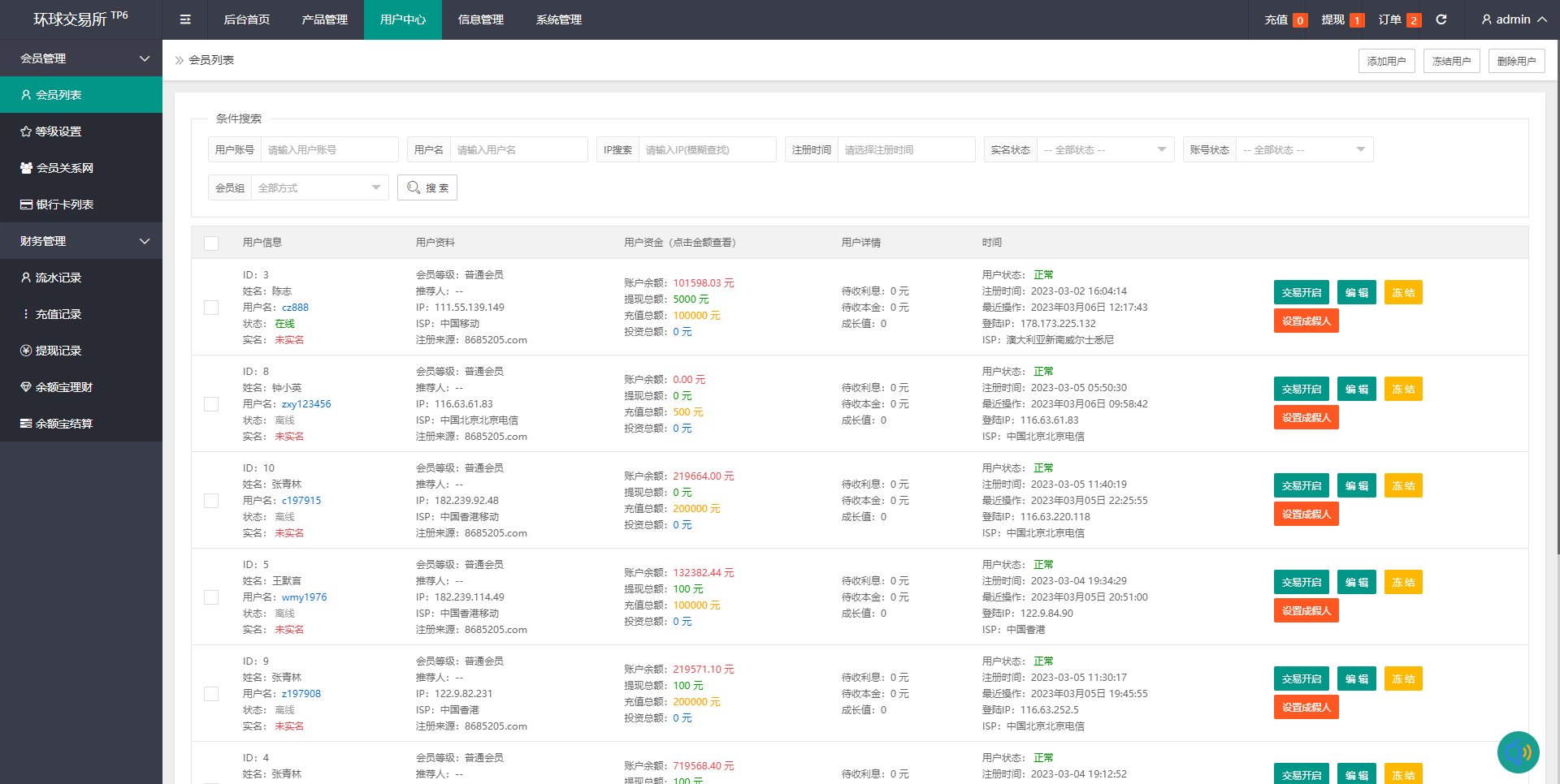 admin 微盘理财 期货外汇微交易系统/微盘时间盘/余额宝/新增防封验证 新构架的微交易系统,系统框架使用TP6的非至尊框架 系统新增首次打开新增商家编码验证躲避反诈及爆红检测、会员推广、站内信、余额宝等多个功能
