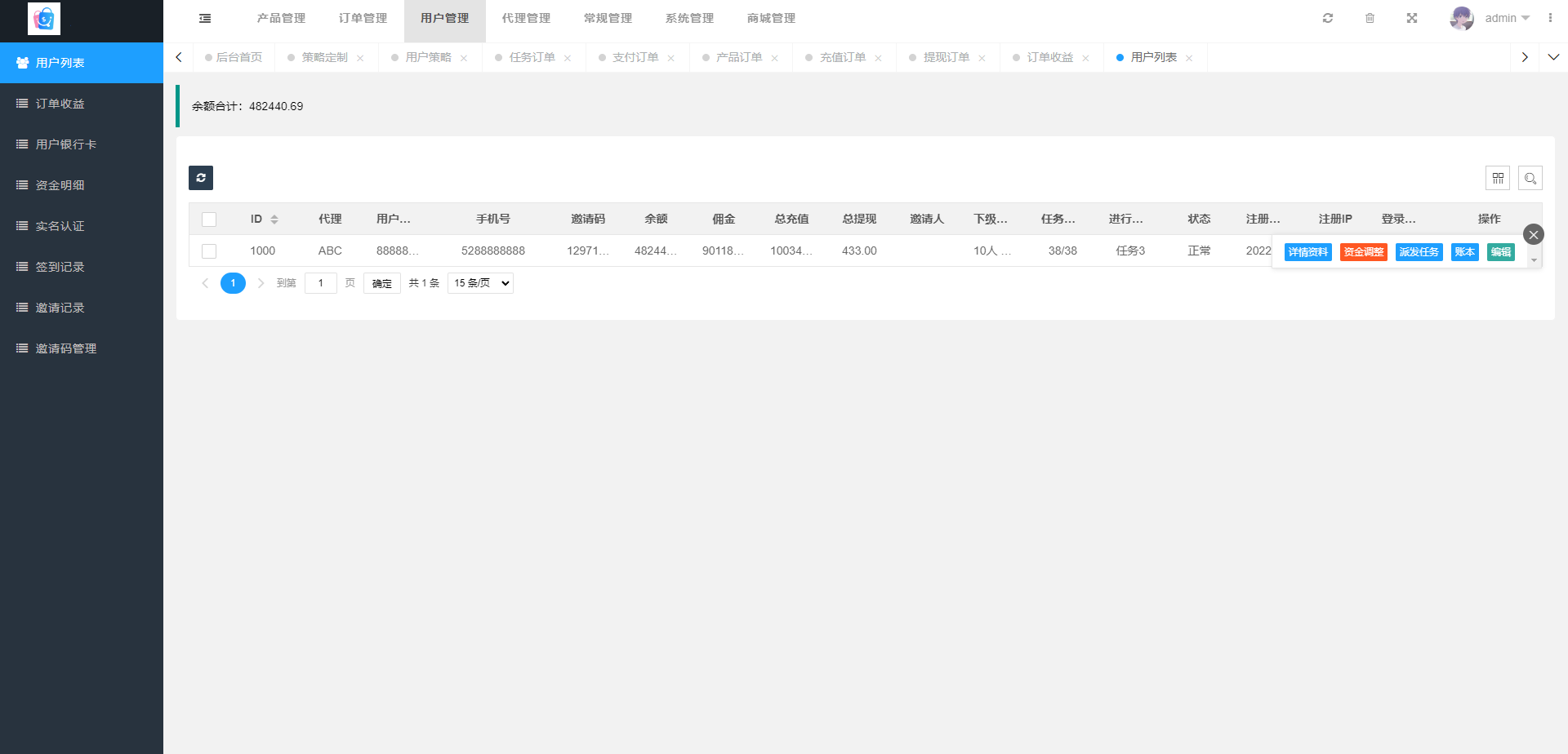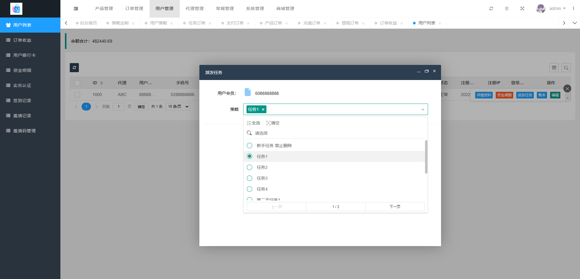 admin 商城刷单 抢单刷单系统/前端uinapp/策略组在线派单/订单自动匹配系统 抢单刷单系统,前端使用uinapp开发后端tp框架 支持用户策略定制在线派单,系统基本符合市场需求,单独的代理后台等功能
