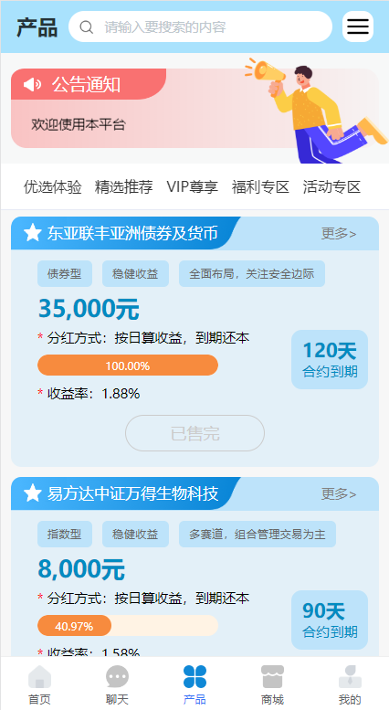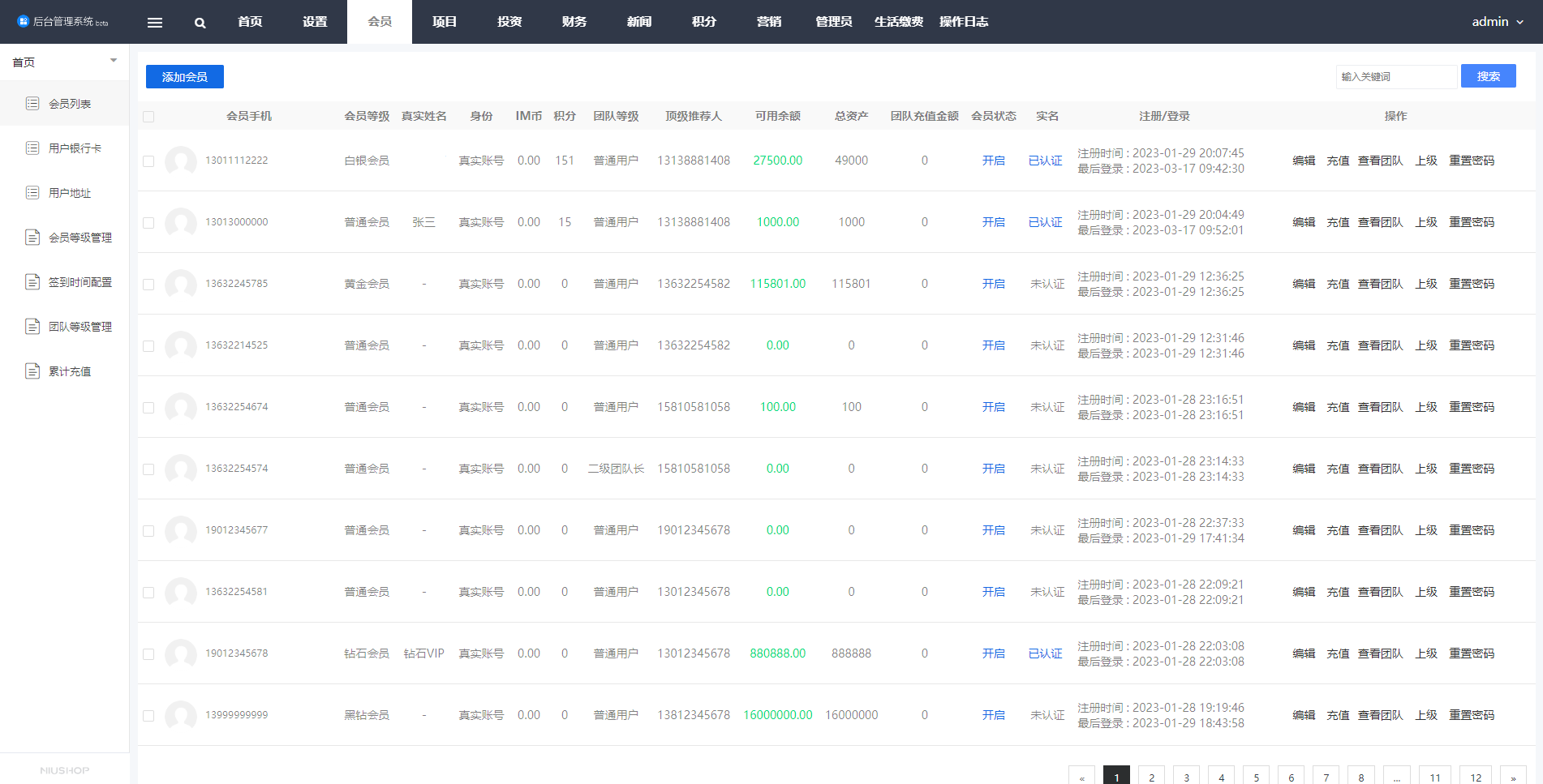 admin 微盘理财 全新项目投资理财系统/投资众筹系统/自带im即时通讯 比较不错的下项目投资系统,系统是thinkPHP框架前端html的 自带im即时通讯(编译后的)可以直接通过理财app添加好友 系统适用行业:项目投资、影视投资、理财投资、充电宝项目、外汇、基金、国际大宗商品、USDT货币投资等。 支持添加多语言