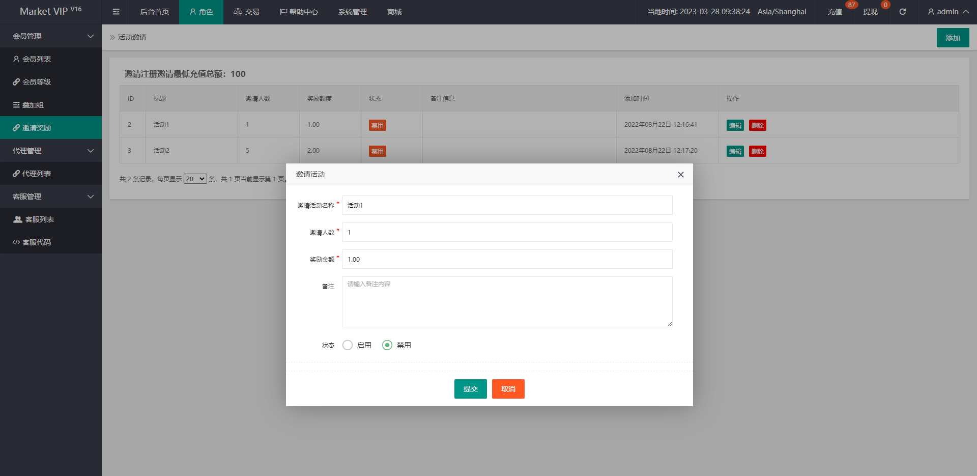 前端重新定制,前端多语言,新增了邀请奖励、大转盘等功能