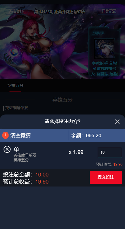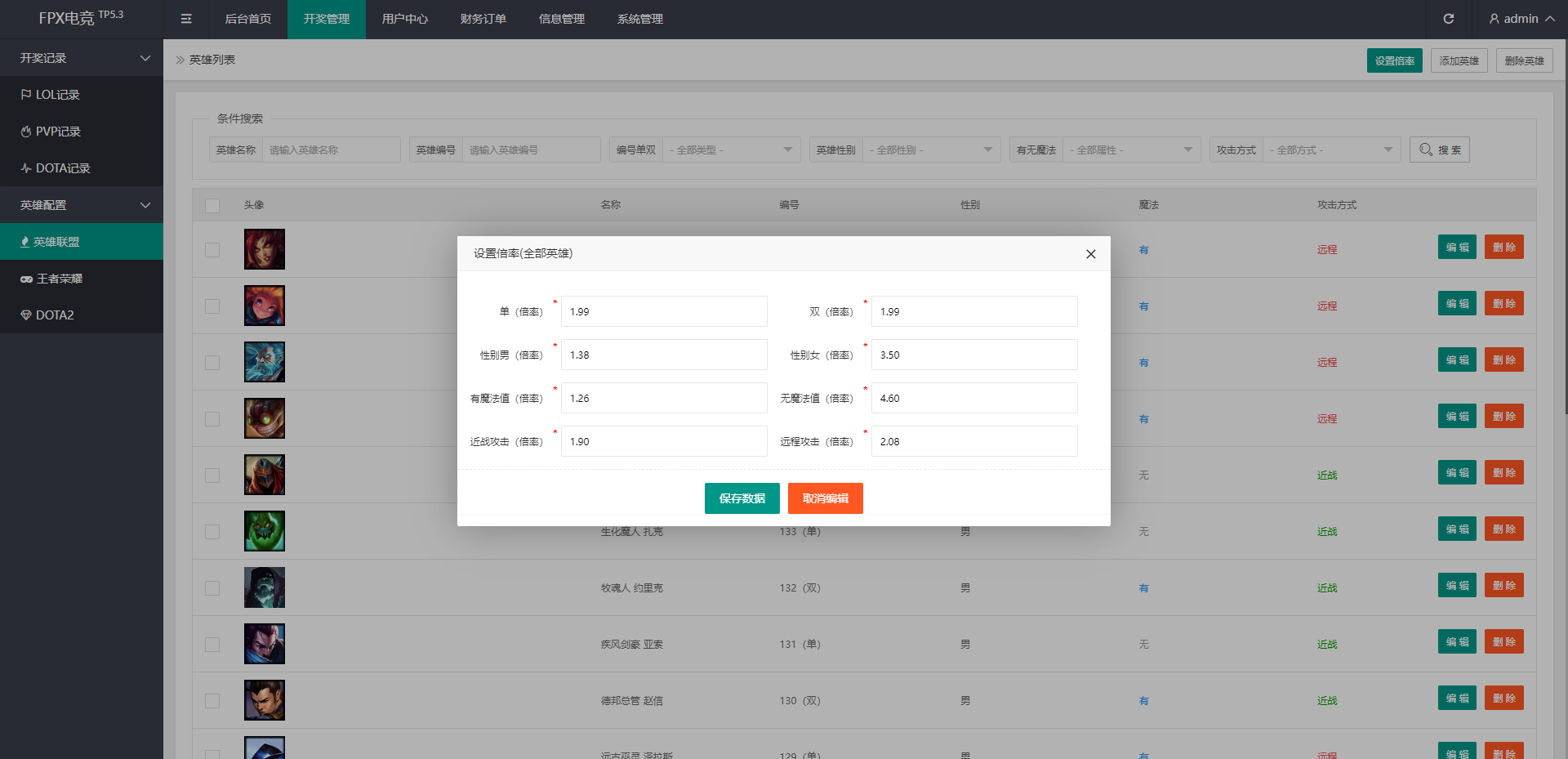 电竞赛事盘系统/电竞赛事投注竞猜/LOL/王者/Dota游戏下注