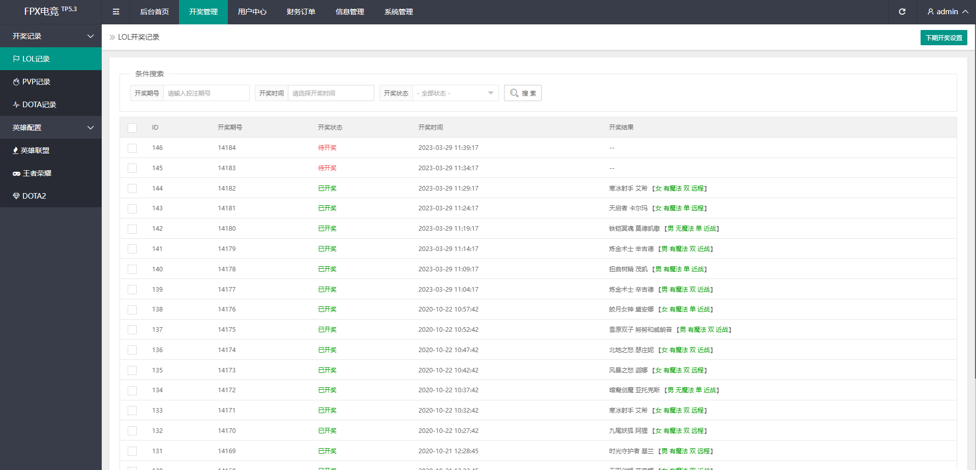 热门的游戏竞猜系统,开奖使用系统彩执行开奖即可