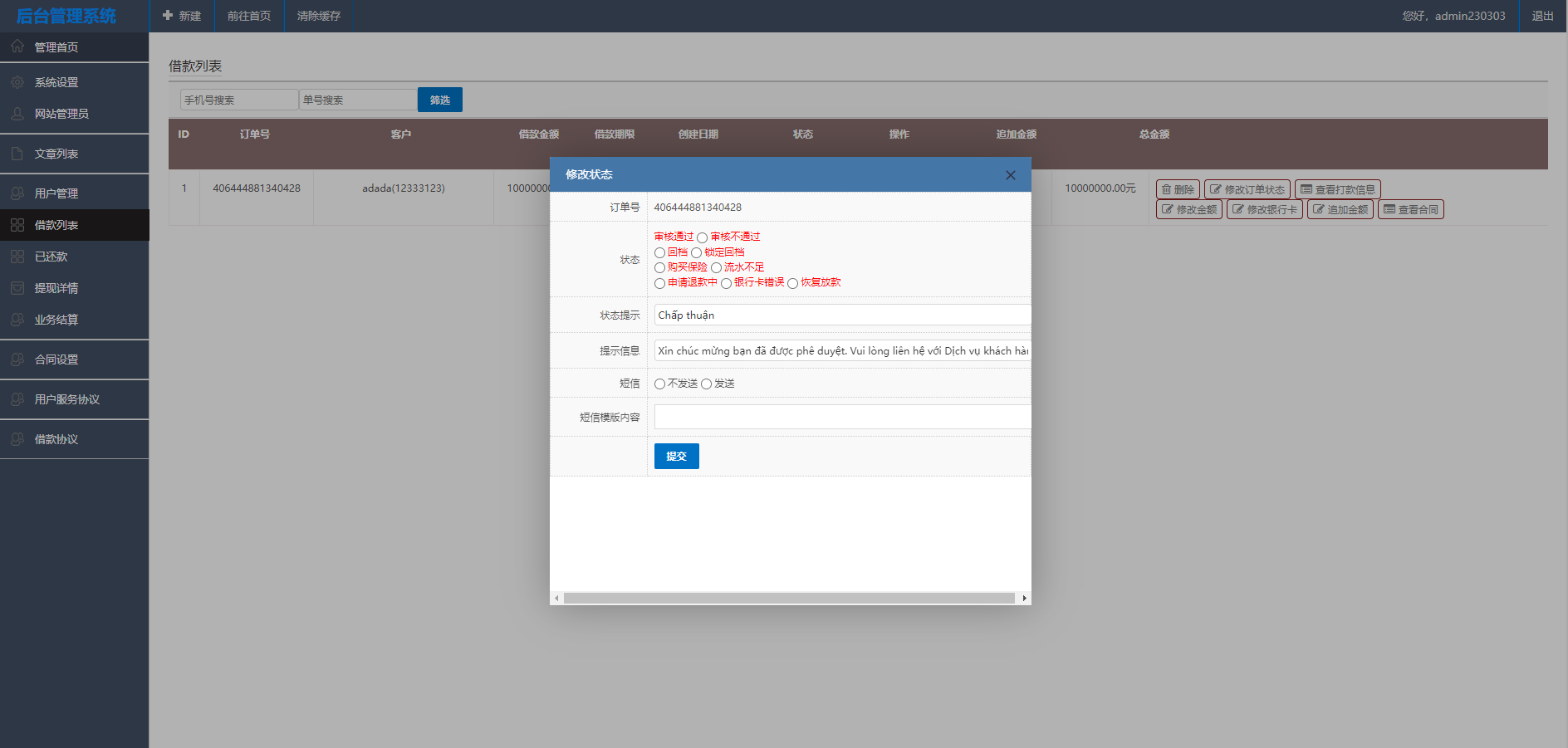 越南小额贷款系统功能是比较完善的
