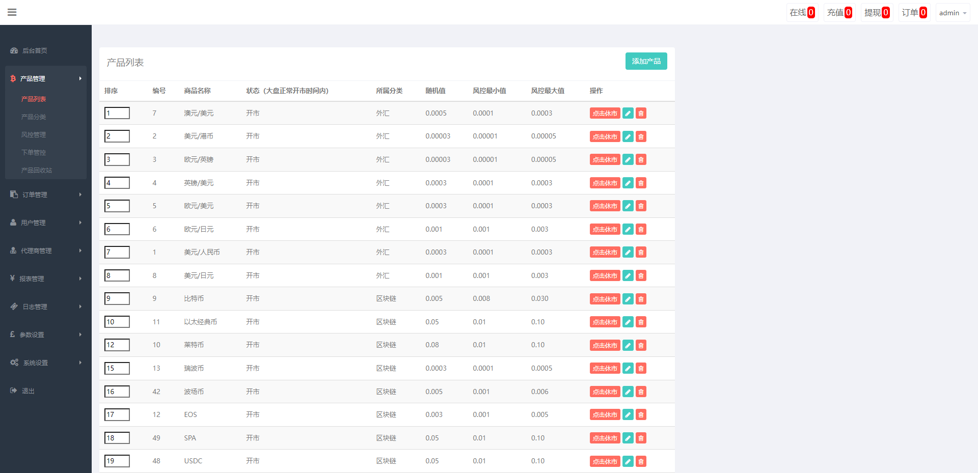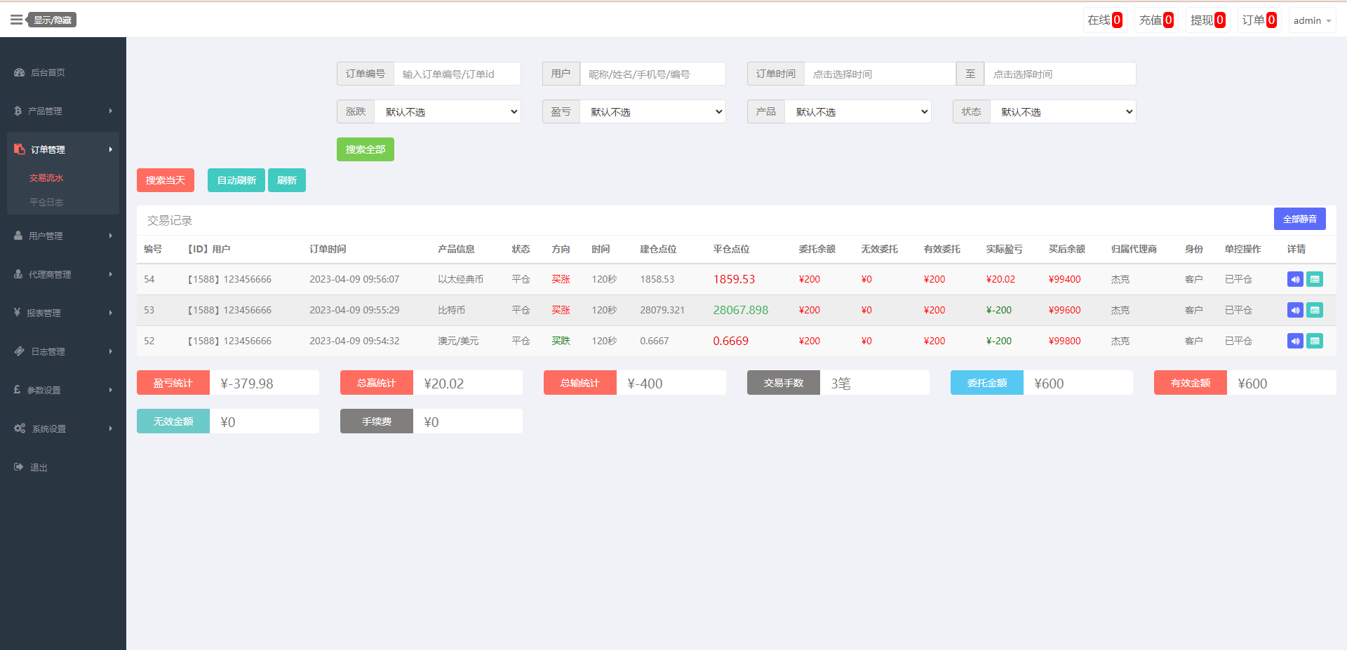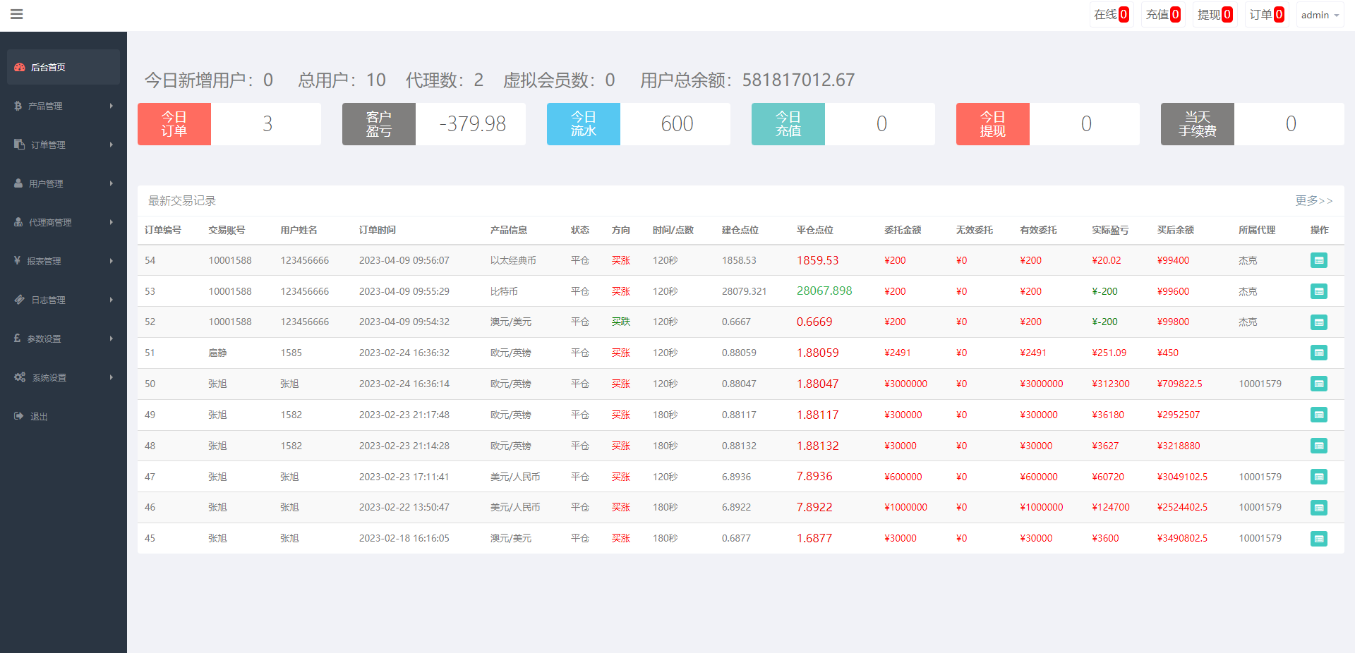 admin 微盘理财 新版双语言汇汇通系统/代理后台/外汇虚拟币微盘/微交易系统 重构版的汇汇通系统,框架也整体优化重构了,新增了代理后台 前端是双语言(支持新增多语言),产品带外汇跟虚拟币,K线正常使用