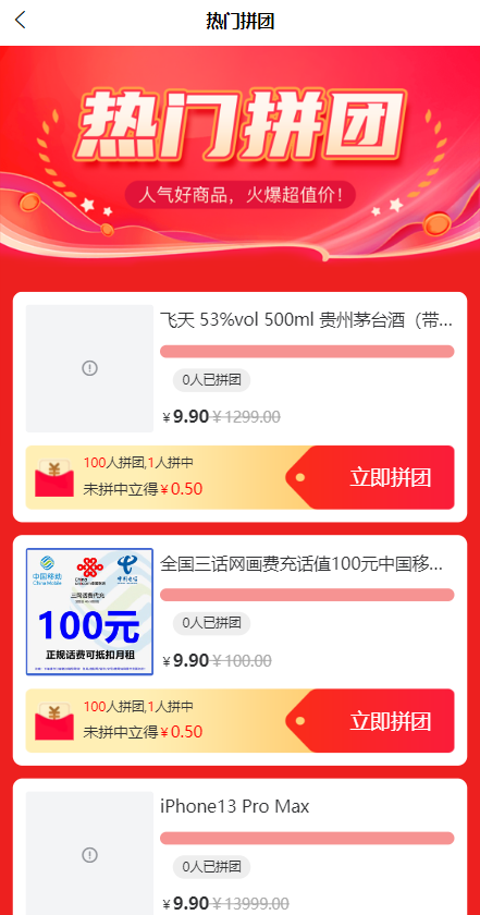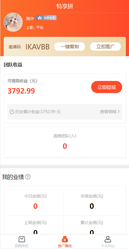 uniapp拼团系统/拼团红包返利系统/拼拼有礼拉新商城