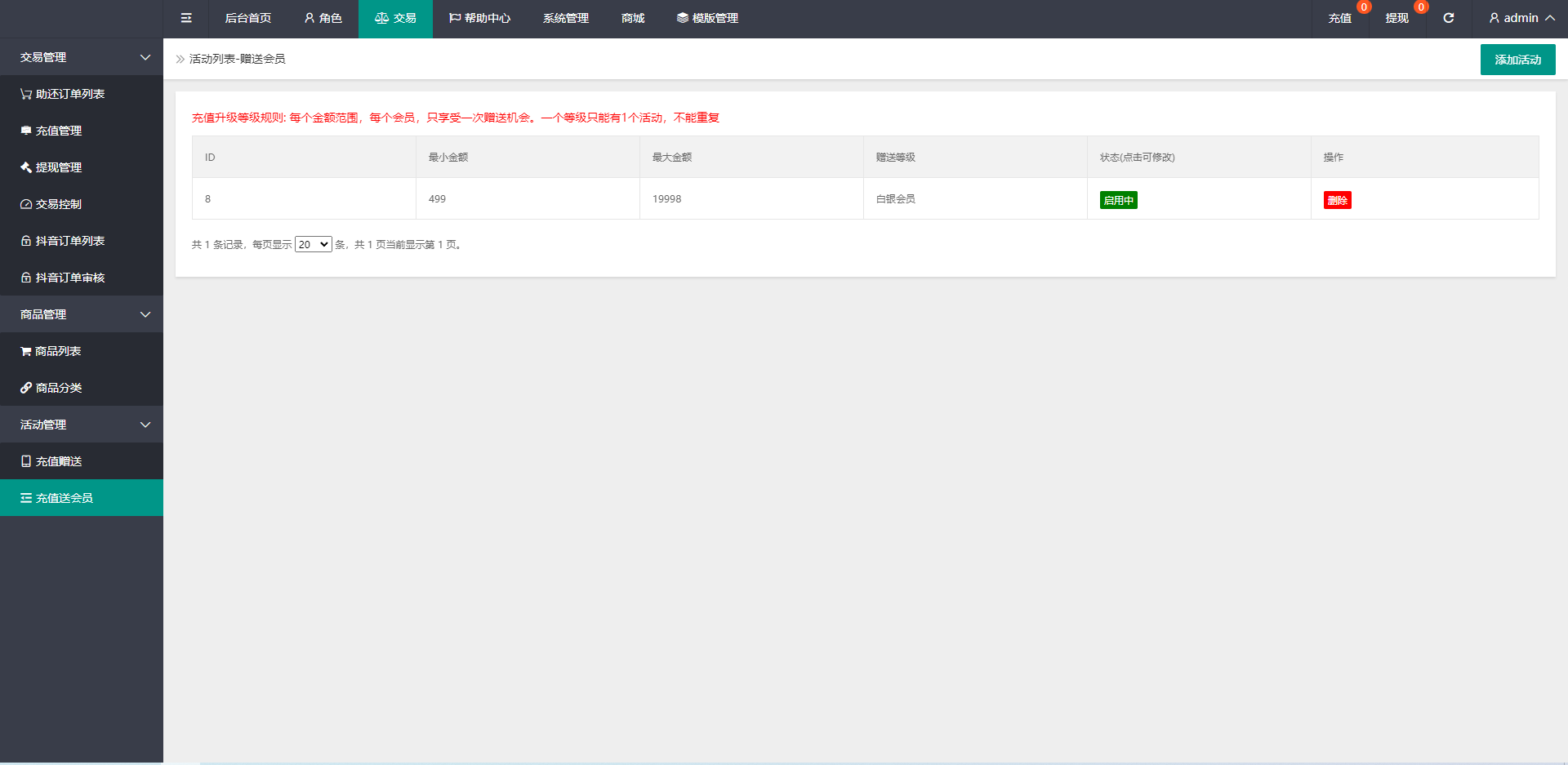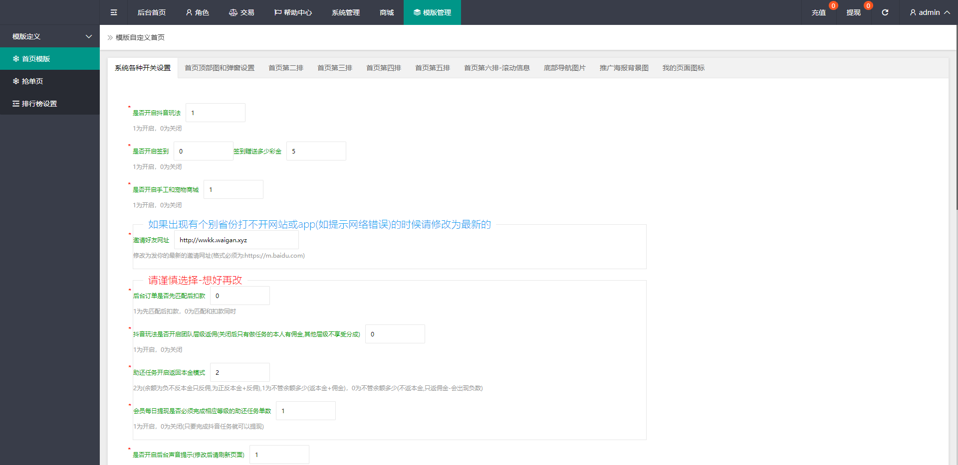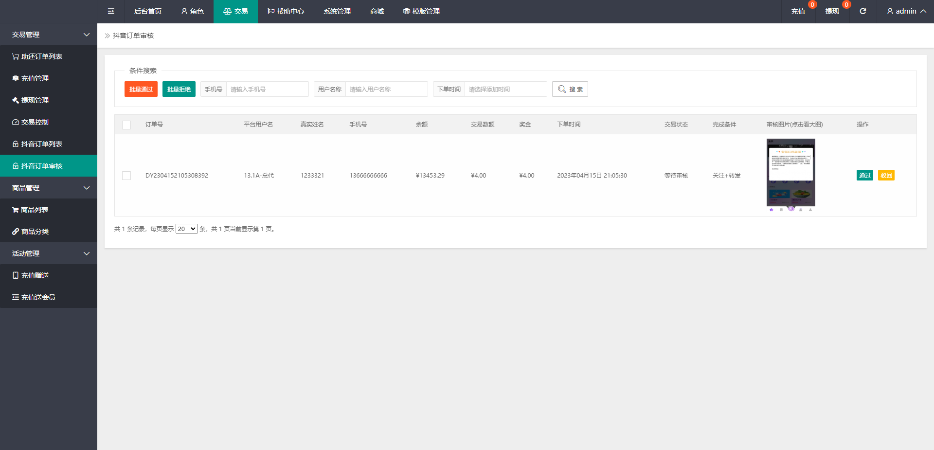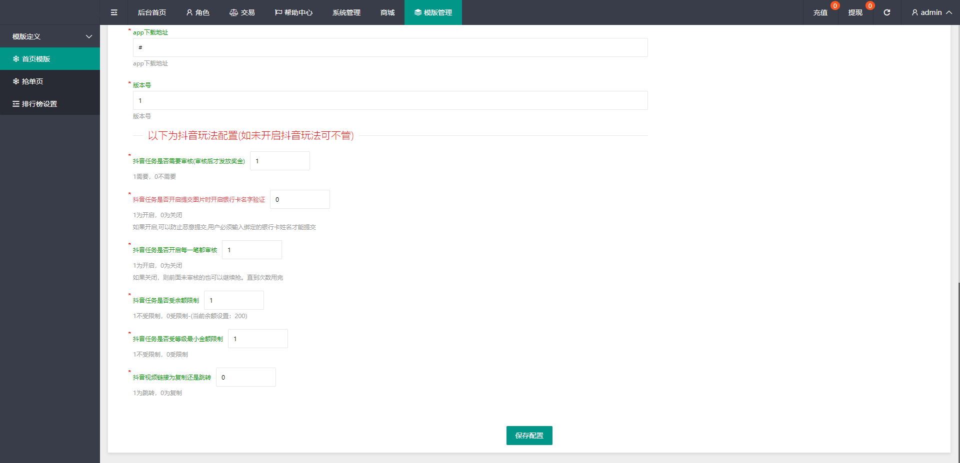 admin 商城刷单 综合系统 定制版抖音刷单系统/抖音抢单刷单/手动自动抢单 刷单系统全新定制版本,支持正常刷单玩法,后台可设置用户手动刷单跟自动刷单 手动刷单后台可设置用户订单金额等,新增了抖音玩法前端提交后台审核,系统新增多个功能 前端单中文,支持二开其他语言