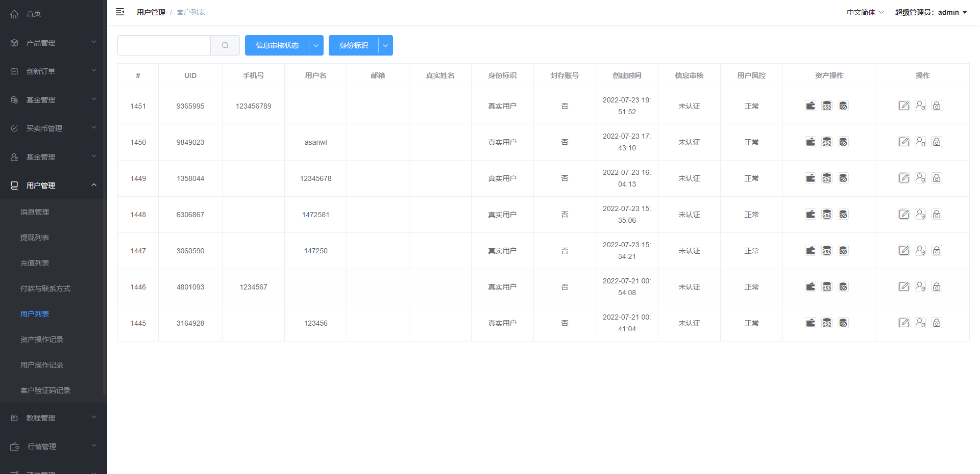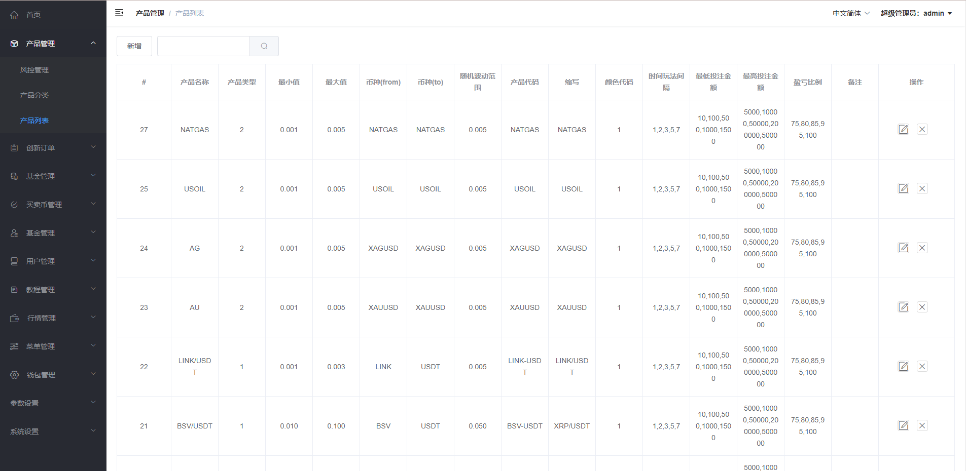 admin 微盘理财 新版微交易微盘系统/外汇期货贵金属虚拟币微盘 系统前后台是vue开发的,api端是php的,K线对接付费的阿里云 前端语言︰中文 英语 法语 俄罗斯 语意大利语 西班牙语 后台:中英双语 系统产品: 虚拟币 外汇 黄金 白银 原油 天然气 (可以自行添加)