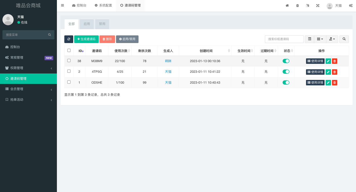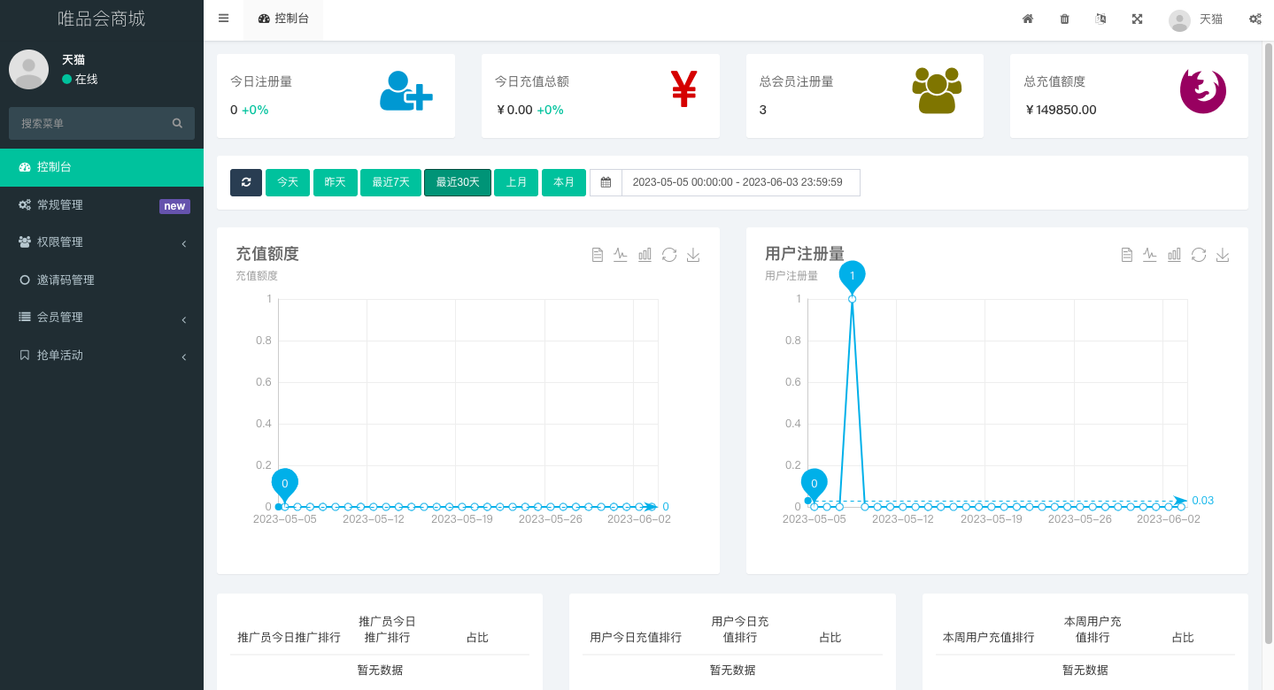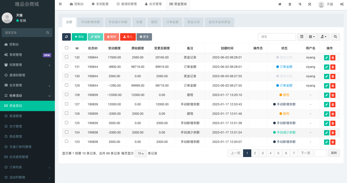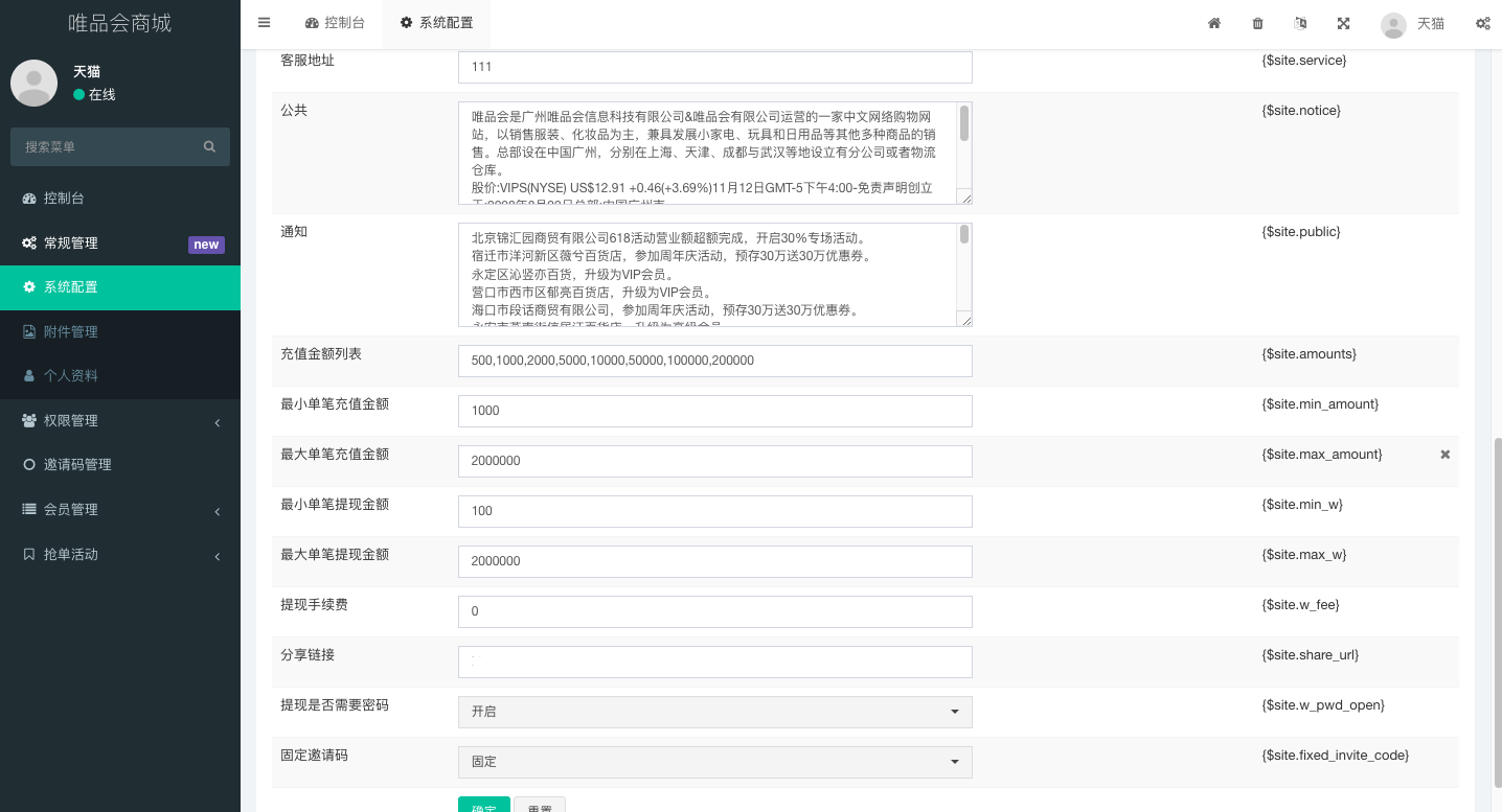 admin 商城刷单 唯品会商城优惠卷投资系统/奢饰品投资理财系统 唯品会商城优惠卷投资系统,后端使用fastadmin框架 系统模式就是前端注册会员联系客户充值余额 后台添加单独会员的活动 前端会员即可领优惠卷投资