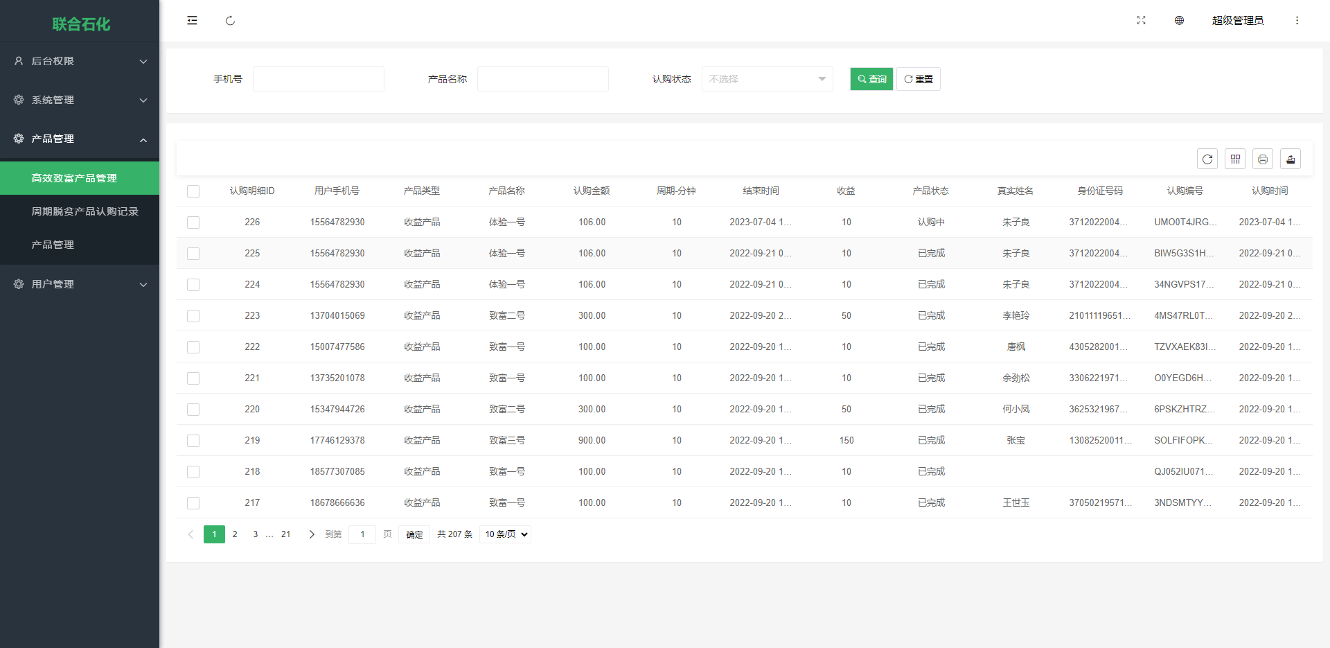 联合石化认购理财系统前端使用uinapp开发,后端thinkphp